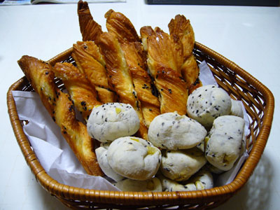 奥のネジリ棒が『薩摩でごわす』という名前のパイ生地にサツマイモをねじ込んで焼き上げたもので