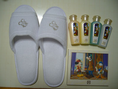 ねずみーキャラ好きでもないのですが記念としてお持ち帰り可能なアメニティグッズ(スリッパも持って帰って良いそうです)を貰っての帰宅でした。