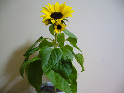 本日の一枚はイマイチ全てがすっきりしないモヤッた私の目に鮮やかに飛び込んで来た鉢植えのひまわりです。
