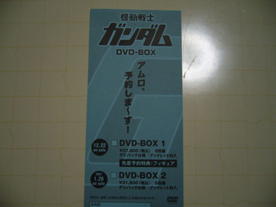 それが画像の予約票、『機動戦士ガンダム DVD-BOX』でした 笑。