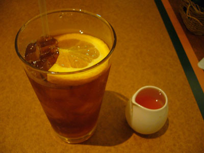 さして珍しい料理達ではありませんが一枚目の飲み物はアイスティーにピンクグレープフルーツの果汁を入れて飲むというシロモノ。