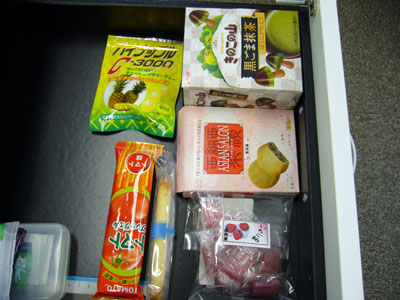 が、以前からいろんなお菓子を溜め込んでいる為、机の引き出しが大変な事に 笑。