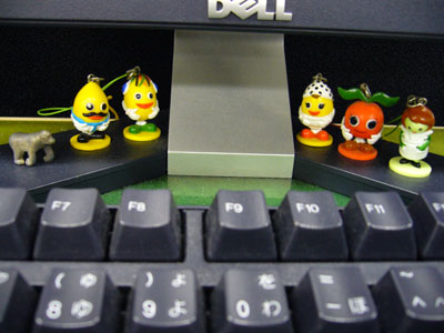 左端にいるゴリは、数年前、出勤したらナゼか私の机の上に置かれていたモノ。