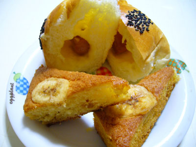 本日は『バナナマフィン』(前)と『チョリソチーズ』(後)でございます。