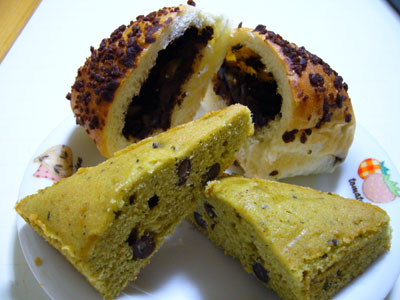 本日は『抹茶パウンドケーキ(大納言入り)』(手前)と『オランジュショコラ』(奥)です。