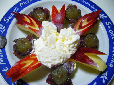 小さいリンゴだったんで飾り切りがイマイチなのが残念。