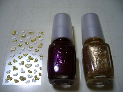 そして買い置きしておいた左側のネイルシール(ゴールドのみ使用)と組み合わせて