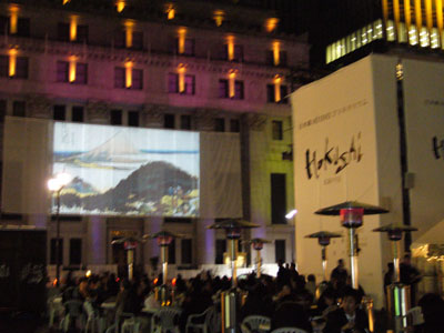 外を出ると北斎の絵がスクリーンに映し出されていて、