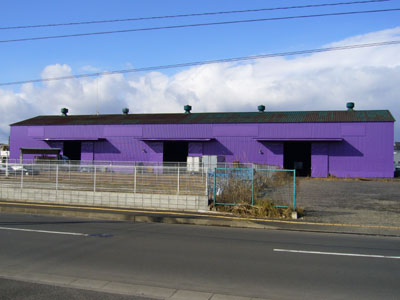 角を曲がれば紫の倉庫が「ど〜ん!」みたいな 笑。