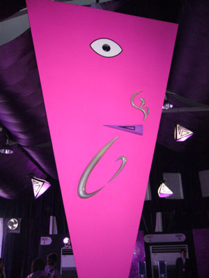 その三角オブジェにとけ込むようにピンクの三角の映像が消え、