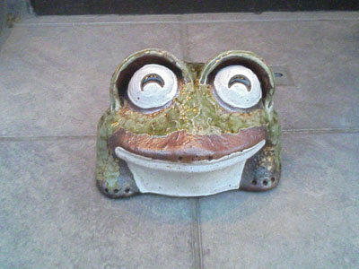 画像の方はウチの近所にあるそば屋の入り口に置かれてあったカエルの置き物。