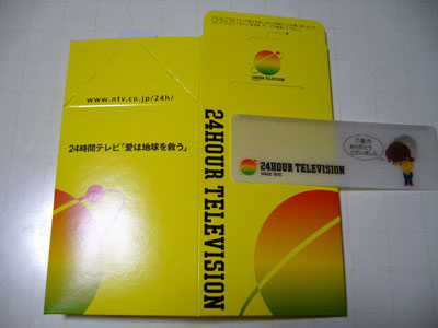 画像の方は帰り際に会場の外で配られていた記念品の組み立て式貯金箱と定規。