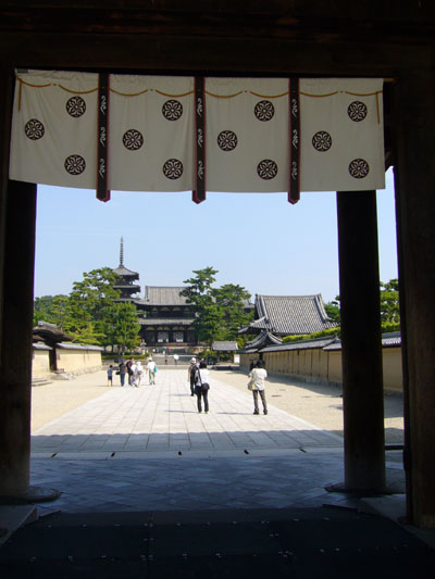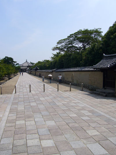 『東大門』を潜ると正面奥に『夢殿』の屋根が。