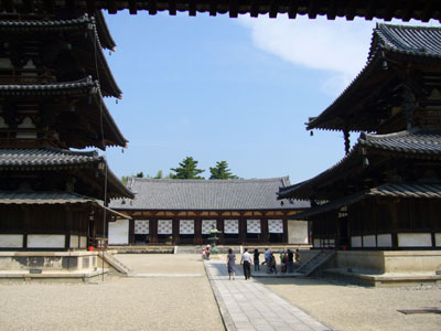 『五重塔』(左)、『大講堂』(中央)、『金堂』。