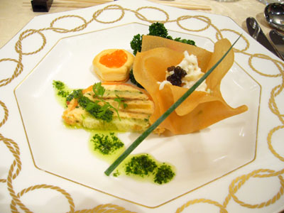 『タラバガニのカクテルとサーモンミルフィーユのアシェット』