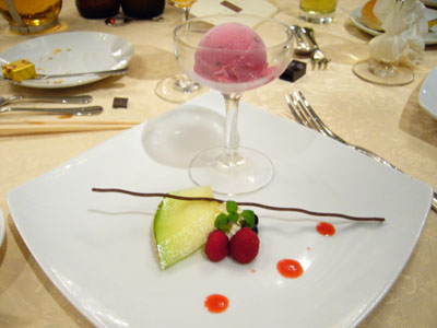 『カシスシャーベットとフルーツの盛り合わせ』
