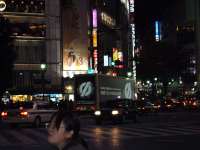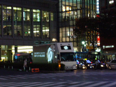 画像の方は夕食後、渋谷に移動した際に見る事が出来た『光るトラック』。
