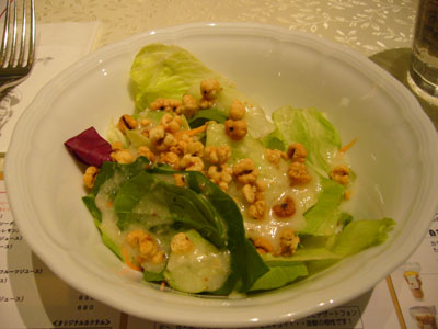 サラダにはと麦がかかっていて、香ばしくてヘルシー。