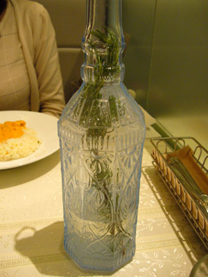 アルカリイオン水が入ってる瓶の中にローズマリーの枝が。