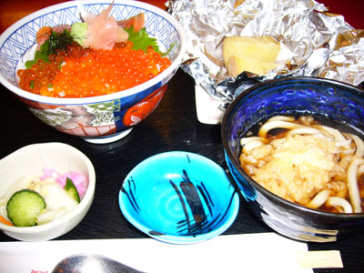 シメはやはり海産物でしょ!っとばかりにイクラ丼のセットを注文。