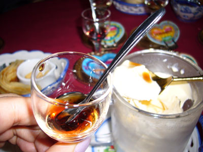 耳かき程度の小さいスプーンでリキュールをすくって、2、3滴垂らして頂くのです。
