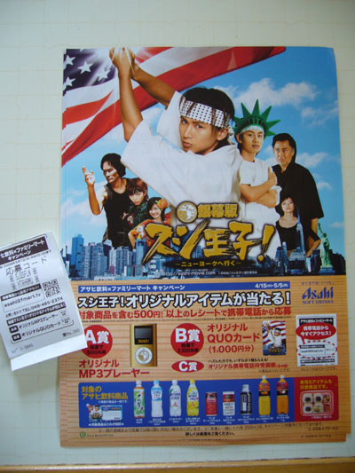 レジ前に置いてあったアサヒ飲料とのキャンペーンのチラシは