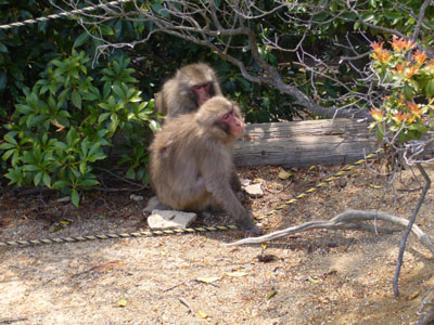 違う場所では鹿の毛づくろいをしている猿の姿を目撃。