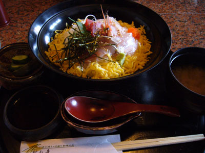 なんとこの日のご飯はこの海鮮丼1食だけでした...。