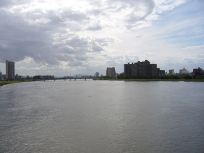 万代橋の上から見た信濃川。