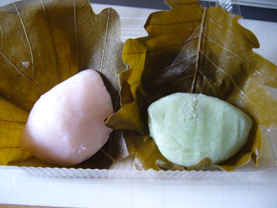 ピンクが白みそあんで草餅がつぶんなんですが、