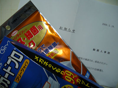 本社の総務人事部から豚インフルについての注意事項のメールが来たので、