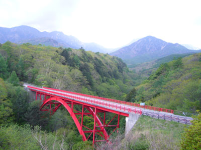 ドライブインからちょっと走ったところにこの赤い橋が。