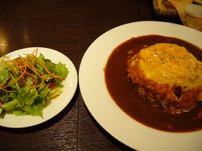 遅めのランチはデミグラスソースがたっぷりかかったオムライス。
