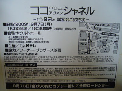 『ココ アヴァン シャネル』の試写会が当たったので、