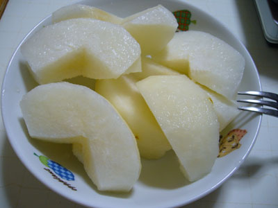 頂き物の梨が瑞々しくて美味いです。
