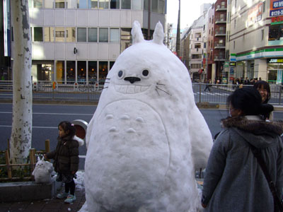 神田〜お茶の水のスポーツ店街の路上に雪だるまのオブジェが何体もあり、
