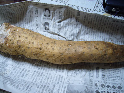みてみて☆ りっぱな山芋ちゃんです。 実家から送られて来ました。 明日の朝はこれをすりすりして 炊きたてのほかほかご飯に乗せるです。 うひゃ〜、想像するだけでも美味しそう。 今から朝ご飯が楽しみだー♪