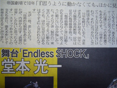 『Endless SHOCK』の記事が夕刊フジに掲載されてるとの事で