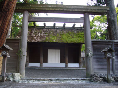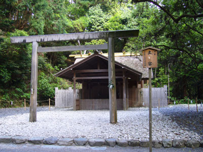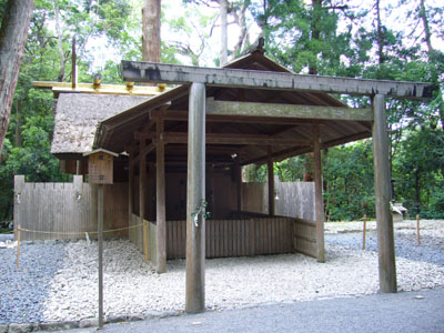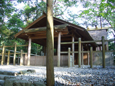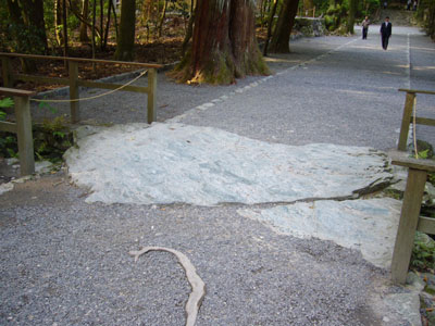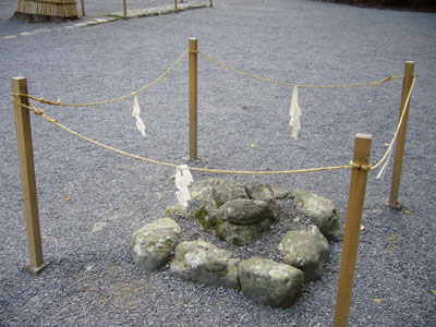 (外宮の御正殿前、別宮遙拝所の西南方にある丸石を3個重ねた石積み。