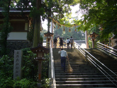 登拝する人は参拝証の襷(大きな鈴が付いてる)を首から下げて登山へ。