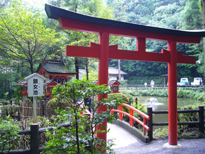朱色の鳥居がとても鮮やかで池には大きな鯉がうじゃうじゃ。