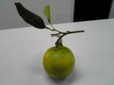 枝付きでかなり立派なんですが色がまだ青くて酸っぱそうですわ 苦笑。