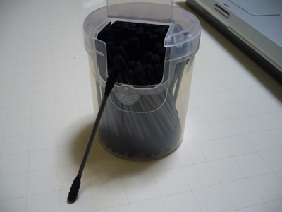 色がグロくてなかなか使う気になれなかった黒綿棒。 試しに使ってみたら意外に使い心地が良いですよ。 先っぽがネジネジしてるからなかなか便利。 でも化粧時に使用する際はやっぱり白綿棒の方が何かと便利ですな。