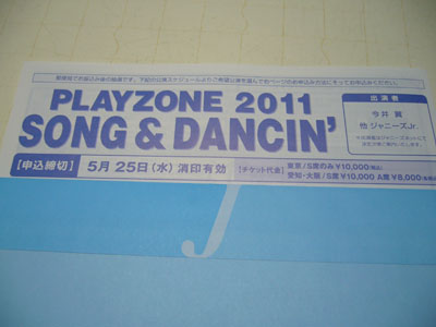 『PLAYZONE 2011』の振込み用紙が届きました。
