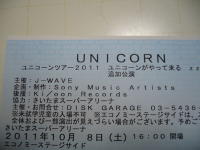 本日はユニコーンLIVE追加公演 in たまアリに行って来ました。